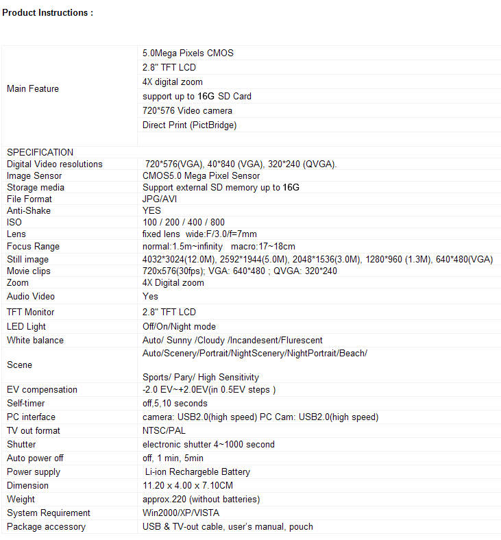 2.8" TFT 5.0 MP Digital Video Recorder Camcorder Camera DV DVR