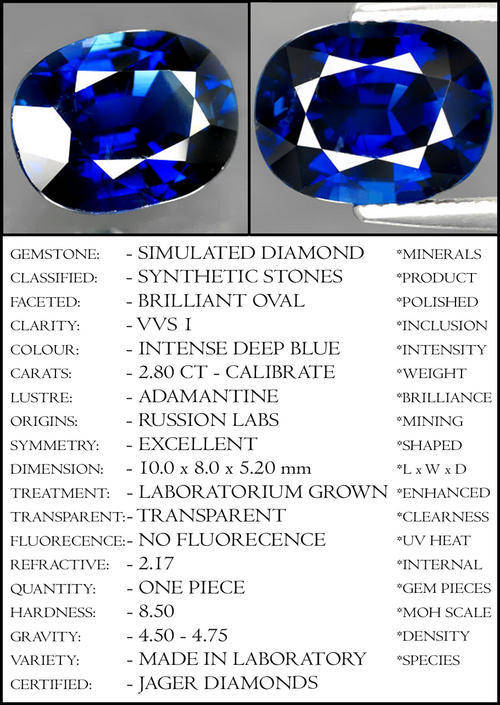 2.80 CT INTENSE FANCY BLUE BRILLIANT POLISHED OVAL DIAMOND IMITATION.
