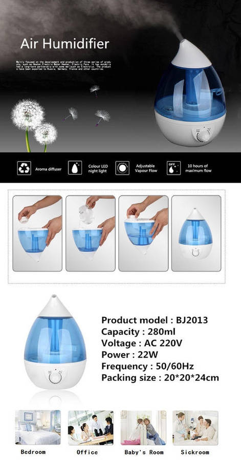 4.Make air fresh to relieve the physical discomforts of a dry nose, throat, lips and skin. Keep the room moist in dry weather season.