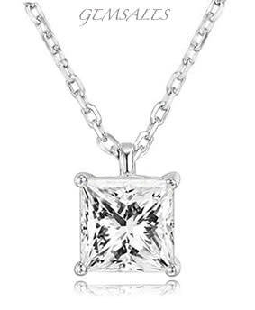 2.9ct Princess Cut CZ Silver Pendant Necklace  *CHAIN 40cm + EXTENSION 5cm*