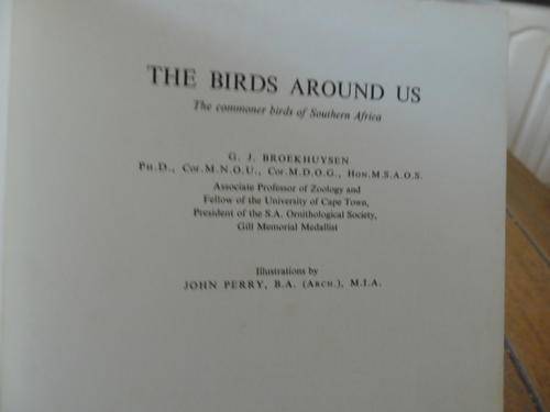 2. THE BIRDS AROUND US. Howard Timmins 1982, 142 pages with alphabetical list of common names pages. Green hardback has shelfwear to edges. (For the ordinary man's who is interested in naming birds he sees. With details where the birds can be found, where they breed, their classification, bird migration with magnificent illustrations by John Perry).