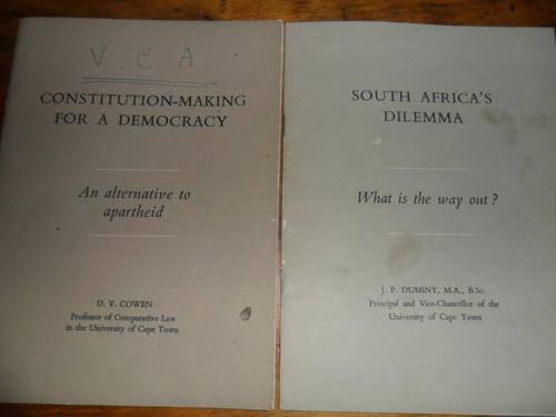 2. Constitution-Making For a Democracy - An Alternative to apartheid - D.V. Cowen - Supplement to Optima, March 1960