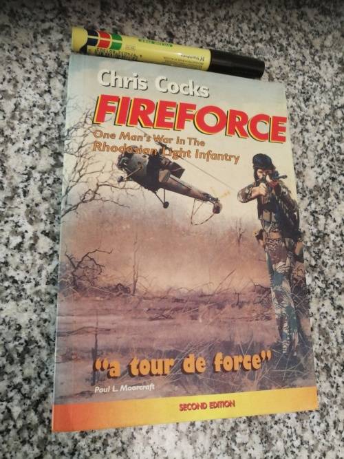 Book 1 ; FIREFORCE ; CHRIS COCKS ; One Man's War in the Rhodesian Light Infantry ; Softcover ; Covos Day Books ; Second Edition ; 2001 ; ISBN 1 919874 32 1 ; No. of Pages ; 306 ; Illustrated with black and white plus colour photographs ( Fire Force military army combat )