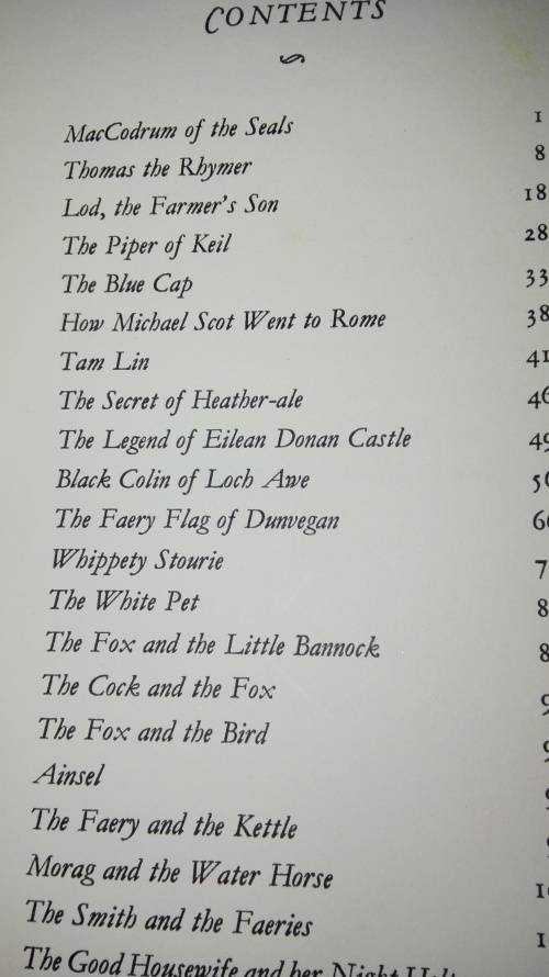 From Google books ; "The magic of the stories in this book is very powerful, and in the hands of a master storyteller they have the freshness of stories told for the first time. There are traditional tales of great beauty, such as "Tam Lin" and "MacCodrum of the Seals"; exciting adventures--"The Adventures of Iain Direach" and "The Ailp King's Children"; and shrewd, simple fables like "The Fox" and "The Little Bannock," all of which will delight small children."
