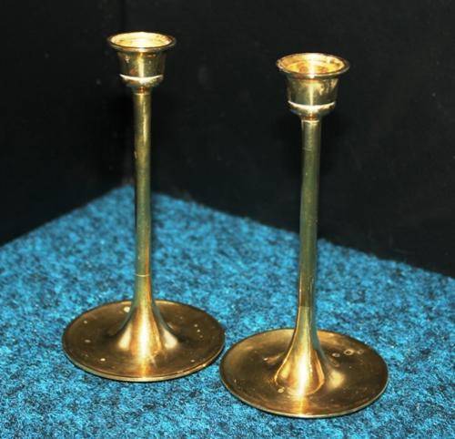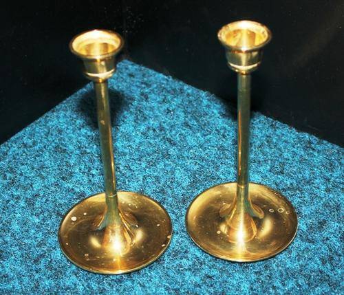 - 2 Brass Candle sticks 160mm tall 225g CONDITION: SOLD as FOUND - Please see ALL IMAGES |