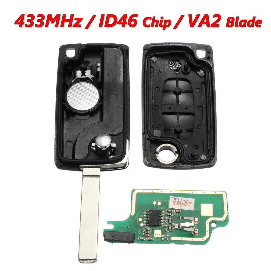 2 Buttons Key Case Fob 433MHz ID46 Chip VA2 Blade for Citroen C2 Peuge0t 207 407