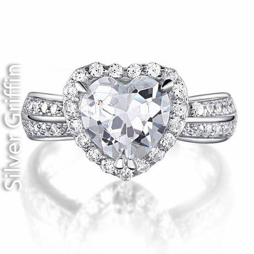 2 Carat Heart Cut Cr. Diamond 925 Sterling Silver Ring Size 8