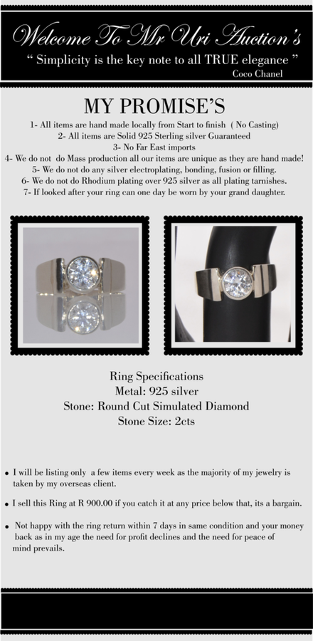 2 Carat ,Round Cut Cr Diamond, Solid 925 Silver, Ring Size 8.5