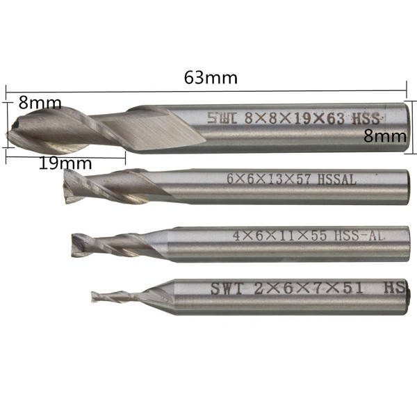 Package weight: 0.04 kg Description: 2 Flute HSS End Mill Cutter Dril Bit Engraving Bit CNC Straight Shank Router Bit