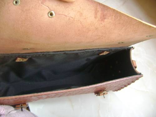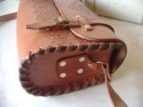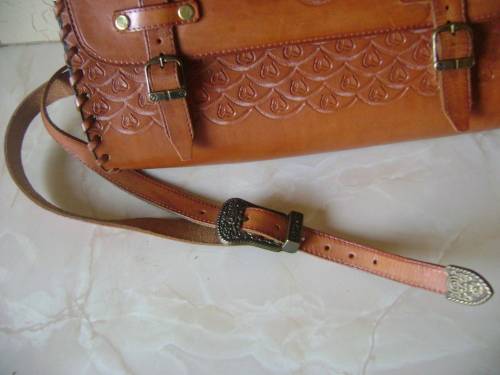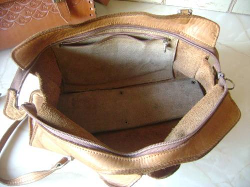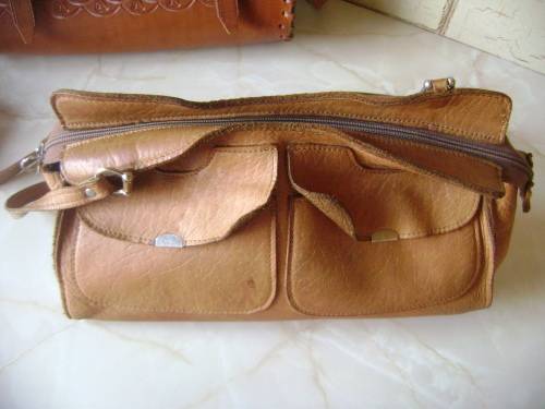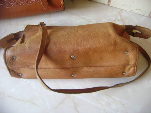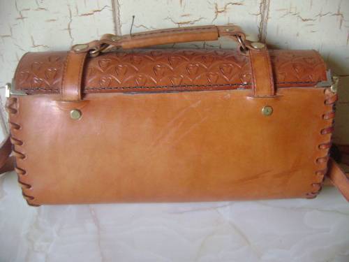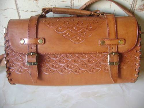 DARKER LEATHER HANDBAG (WITH EMBOSSED PATTERN) - 30 CM SIDE TO SIDE,
