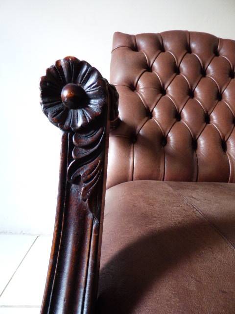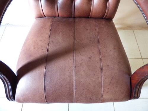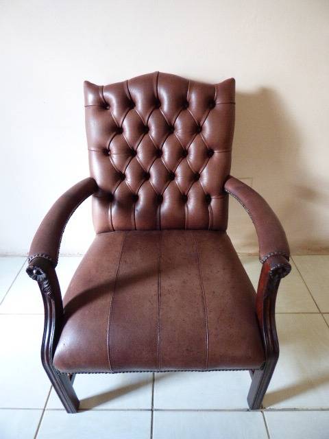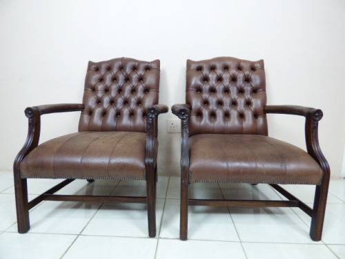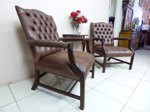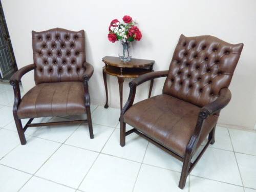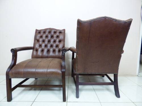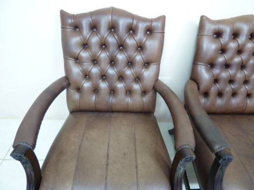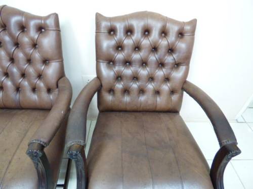 ***GORGEOUS VINTAGE, GENUINE LEATHER "CHESTERFIELD STYLE" ARM CHAIRS***
