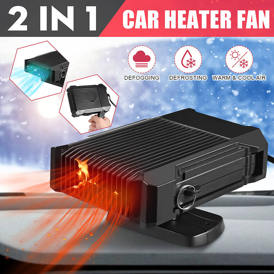 Features: - Quickly heats your vehicle. - No need to wait for engine to warm. - This 12v car heater defroster quickly heats the air in your car without having to wait for your engine to warm up. - It uses your car cigarete lighter socket and allows you to defrost / demist your windows quickly and efficiently so you can get on the road and get to your destination. - If you delayed in a traffic incident you can also stay warm without running the engine. - Can also be used as a fan only to cool you down in the summer months. - Just plug it into your vehicle cigarete socket and turn it on. Specifications: Material: ABS plastic Power: 300W Voltage: DC 12V Line length: 2m Size: 20*13*9cm/9.1*5.1*3.5in Color: Black Package Included: 1 x Heater Cooler Fan More Details: