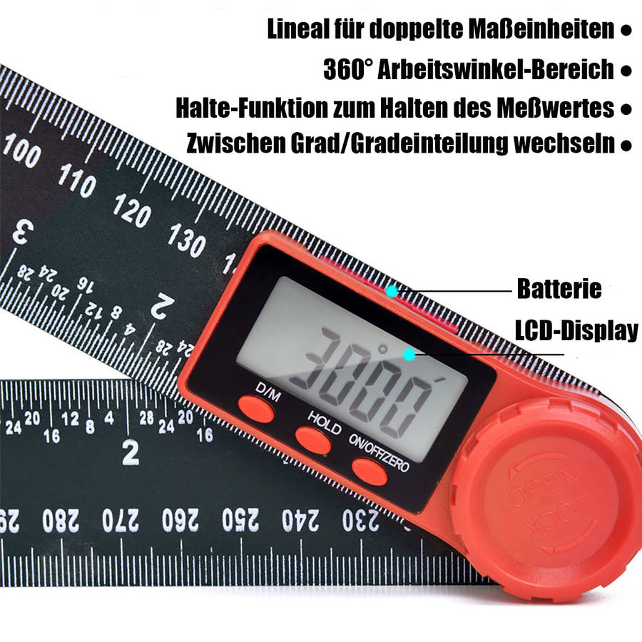 | Specifications: Material: Stainless Steel + Plastic Size Range: 0-300mm Measuring Range: 0-360° Resolution: 0.05° Accuracy: ±0.3° Repeatability: 0.05° Battery: 1 * 3V CR2032 Lithium Battery (Built-in) Features: ● ACCURATE & Fast: Calculating angles quickly and accurately, digital display clearly ● TWO SCALE DISPLAY: Both measure the angle and length, metric and imperial scale ● 360° MEASUREMENT RANGE: Stable locking function can lock the measurement at any angle ● INTELLIGENT & SAVE POWER: Automatically shut down after 6 minutes of inactivity ● The ruler could be hold at any angle ● Holding and zeroing function, 'Zero' button for zeroing and 'Hold' button for holding the angle readout Package Included: 1 x Digital Angle Ruler          |