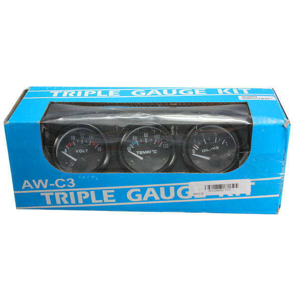 -Color: Black -Wire Length: 11.3 cm -Water Temp Gauge -- 40 to 120 ¿ -Oil Pressure Gauge -- 0 to 7 KG -Voltage Gauge -- 8 to 16 V
