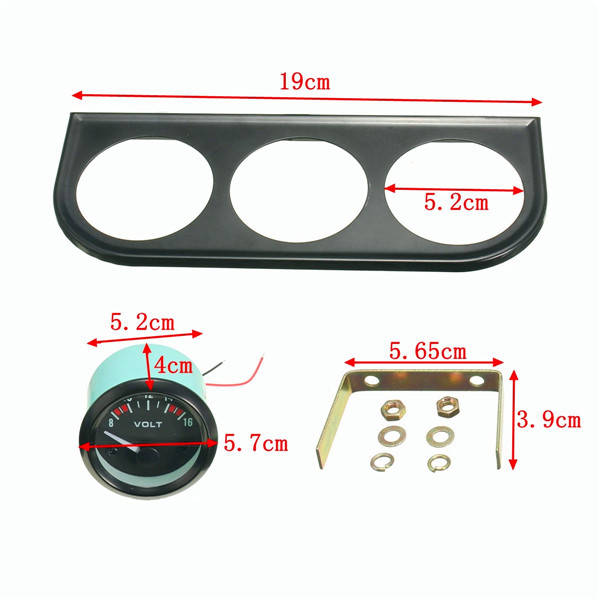 1 x Water Temp Gauge 1 x Oil Pressure Gauge 1 x Voltage Gauge 1 x Three Hole Gauge Bracket 1 x Sensor 1 x 1/8" NPT Sensor Thread Some installation accessories 1 x Instructions