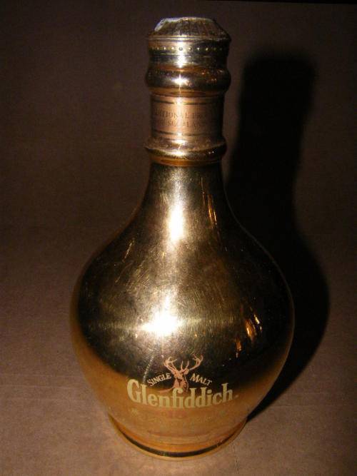 2 Large porcelain advertising bottles - Glenfiddich ( still sealed, but evaporated ), Dimple (empty)