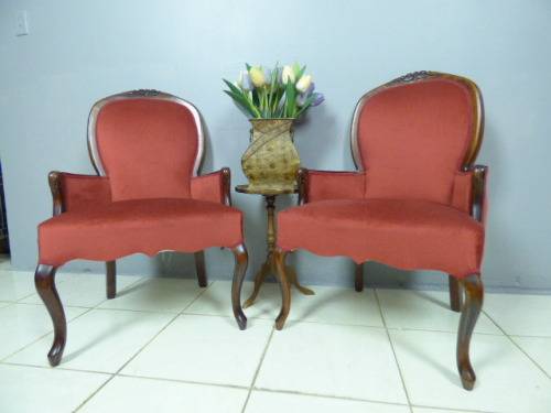 THESE ABSOLUTELY BEAUTIFUL ANTIQUE MAHOGANY CARVED QUEEN ANNE PARLOUR CHAIRS ARE STUNNING AND PERFECT AS A SHOW PIECE IN A BEDROOM, LOUNGE, STUDY, YOU NAME IT. BEAUTIFULLY UPHOLSTERED WITH A SOLID HAND CARVED FRAME, THESE CHAIRS ARE IN AN EXCEPTIONAL CONDITION. THEY'RE BUILT SOLID AND DEFINITELY MADE TO LAST - FIRM ON THE GROUND AND VERY COMFORTABLE!!! THEY MEASURE ROUGHLY 55cm x 65cm x 100cm HIGH.