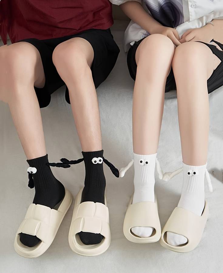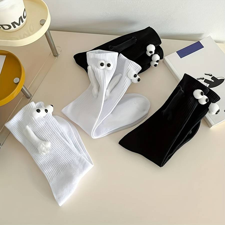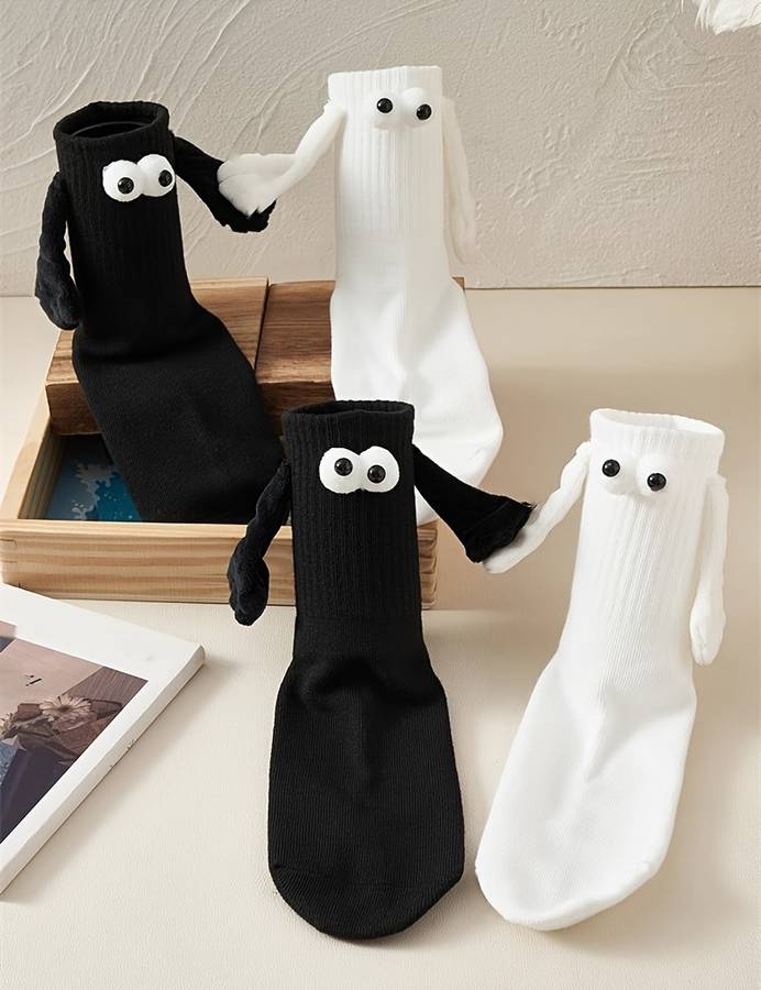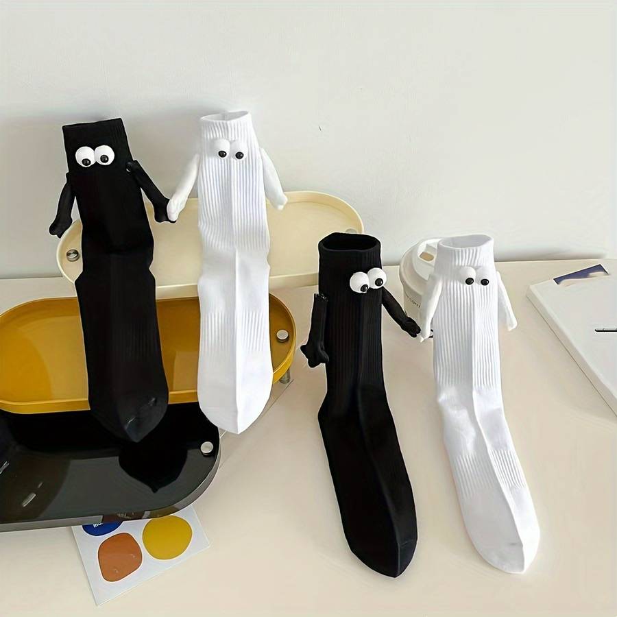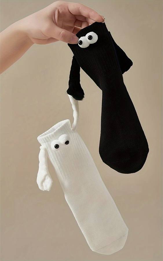 2 Pairs Black One Size Magnetic Couple Socks Playful Cartoon Face Design Matching Black Wh Composition:90% Polyester,10% Elastane Material:Polyester Operation Instruction:Hand wash or professional dry clean Pattern:Solid color Socks Type:Short Socks Quantity:2 Pairs Gender:Couple Weaving Method:Knit Fabric
