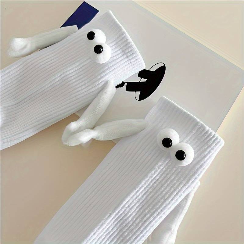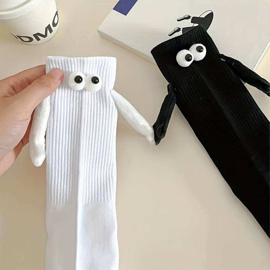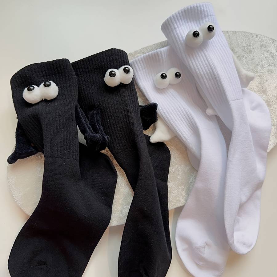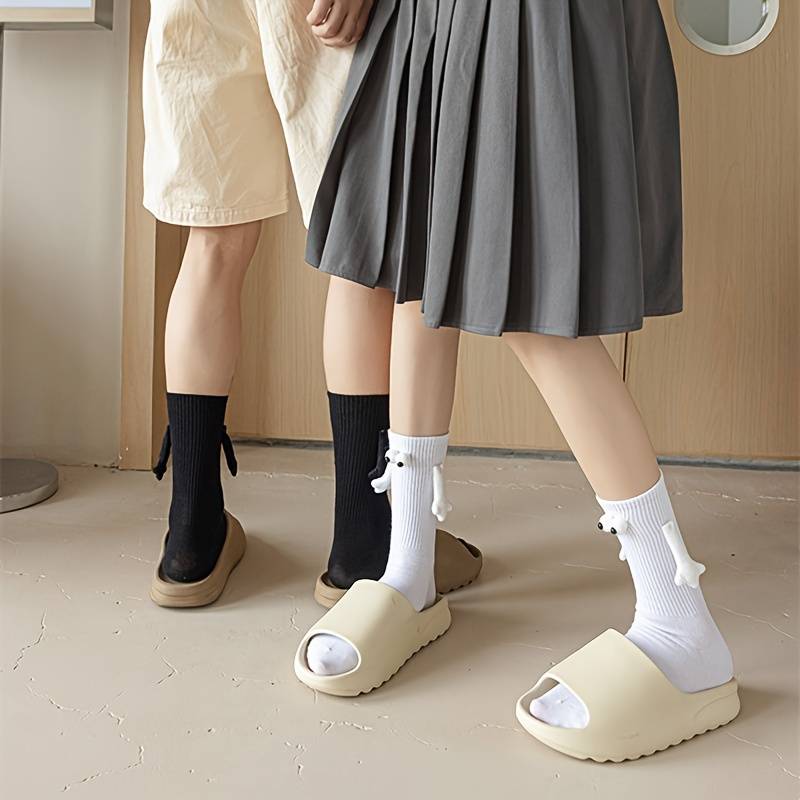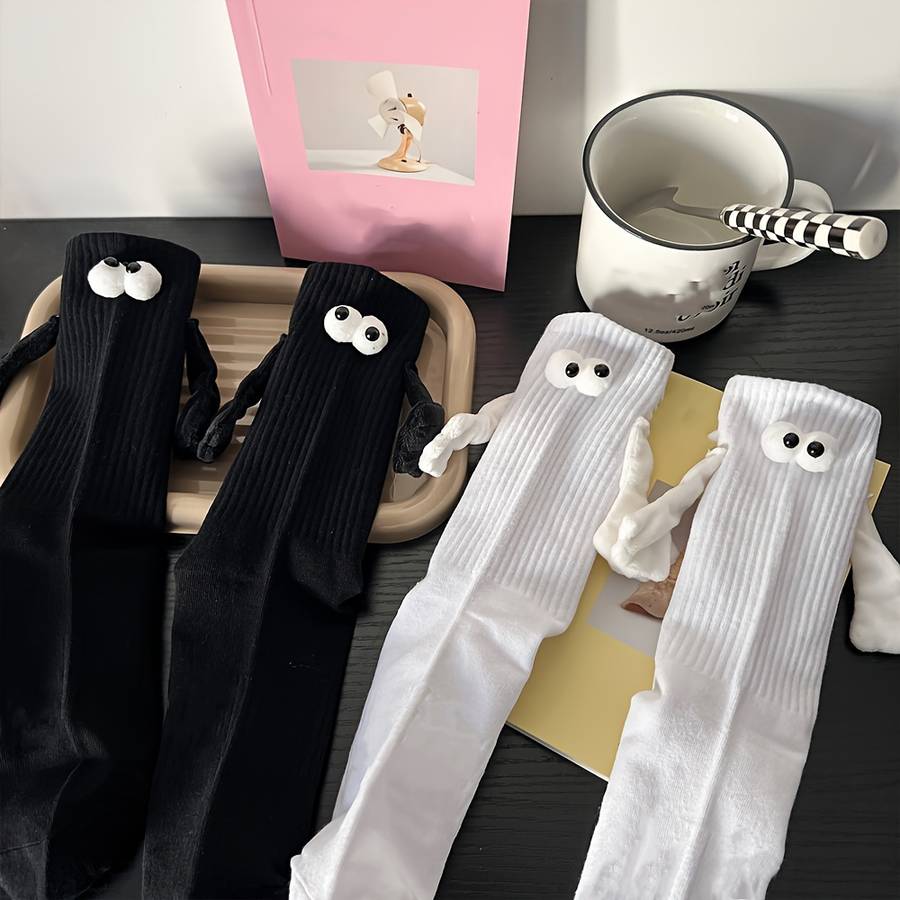 2 Pairs Black One Size Magnetic Couple Socks Playful Cartoon Face Design Matching Black Wh Composition:90% Polyester,10% Elastane Material:Polyester Operation Instruction:Hand wash or professional dry clean Pattern:Solid color Socks Type:Short Socks Quantity:2 Pairs Gender:Couple Weaving Method:Knit Fabric