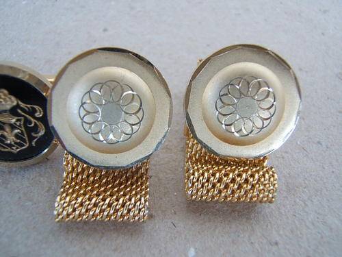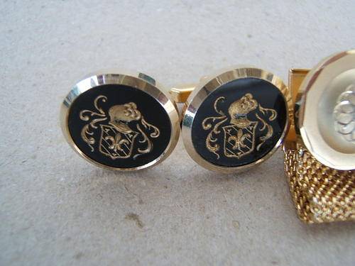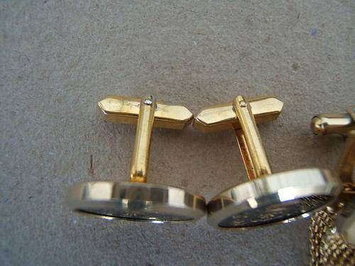 Pair of gold plated cufflinks with insignia. The cufflinks are about 2 cm in diameter/width.