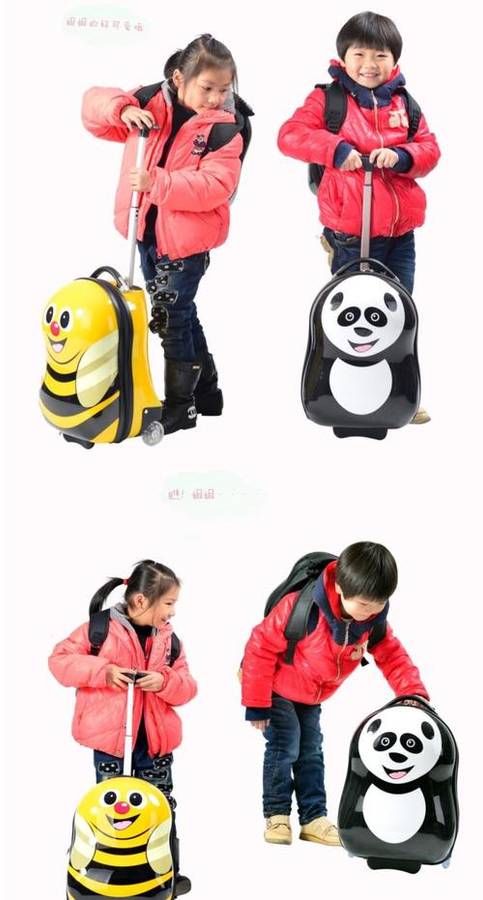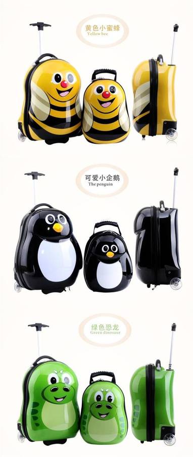 2 PCS SET 3D children trolley school bags kids luggage trolley bag suitcase