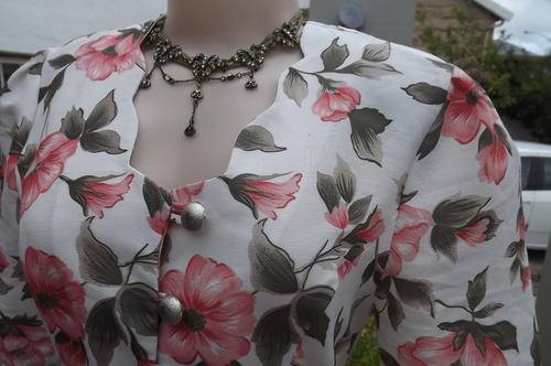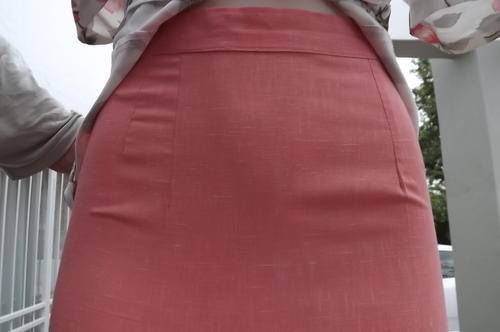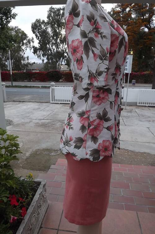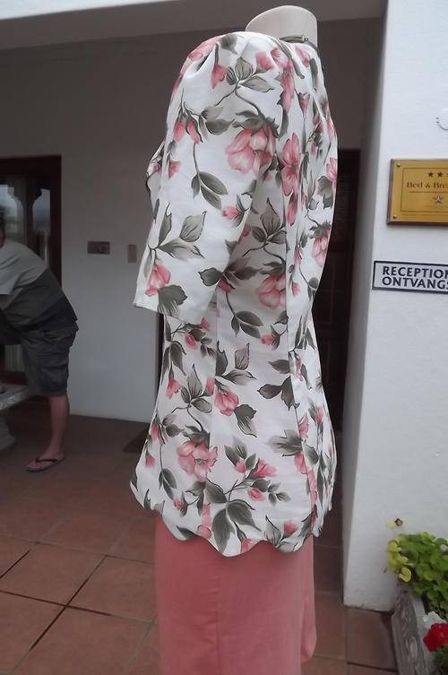 Two Piece Feminine Vintage Suit with Peach Colour Knee Length Skirt and White/Peach Colour Jacket in size 8/32 by Foschini - Stunning Tailored White Jacket with Peach Colour Flowers - scalloped Seam and Neckline - buttons in front with fabric loops - very good condition
