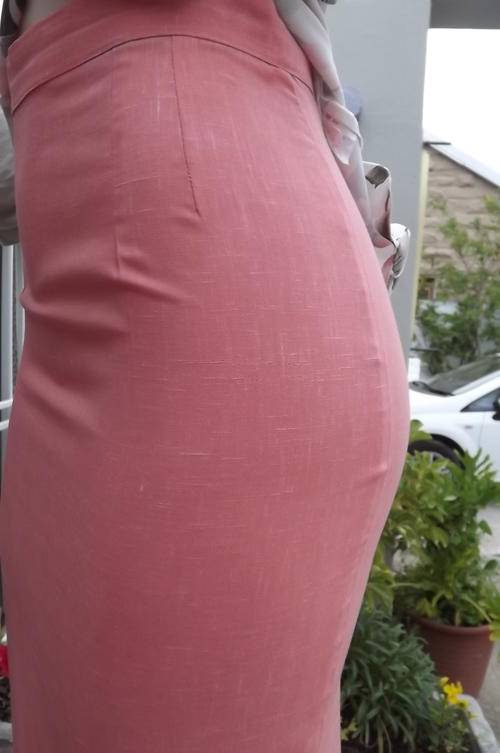 2 Piece Feminine Vintage Suit with Peach Colour Knee Length Skirt & White/Peach Jacket in size 8/32