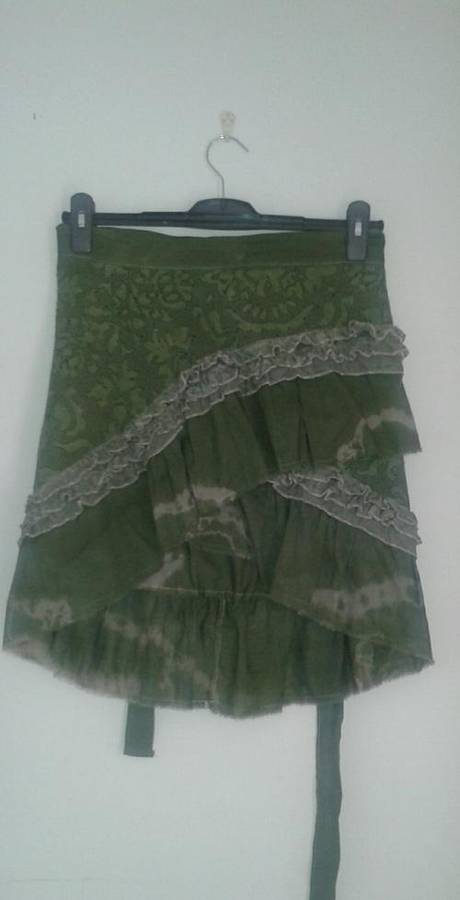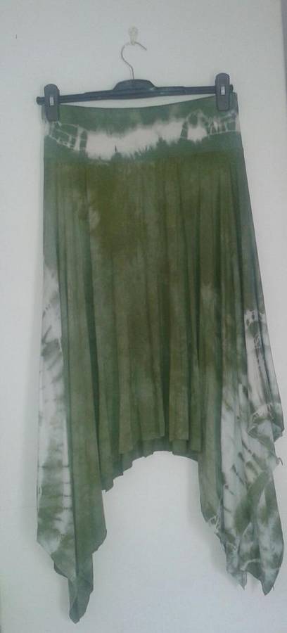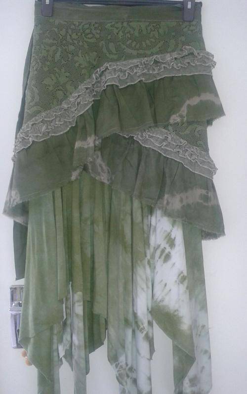 2 piece skirt set, green tie dye full length skirt in viscose lycra, with green lace wraparound skirt by Freedom