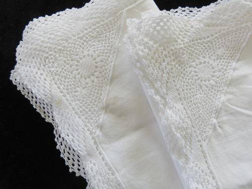 Set of 2 serviettes - 42c x 42 cm - white -  one has 2 small holes.