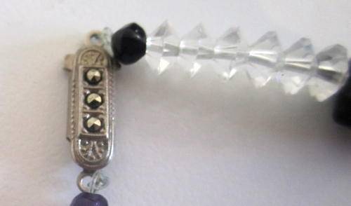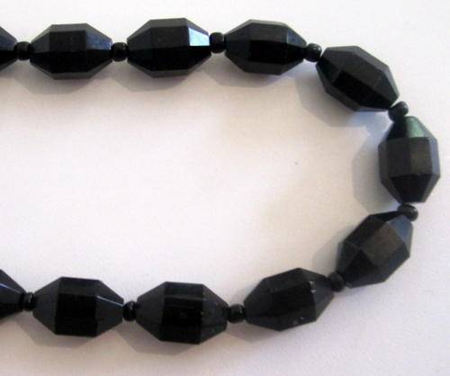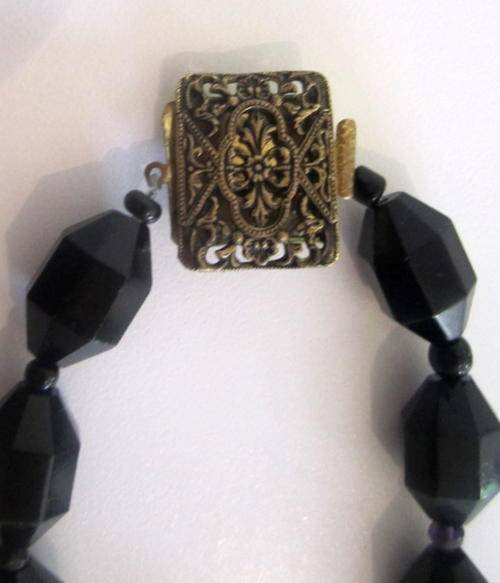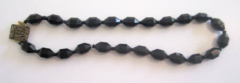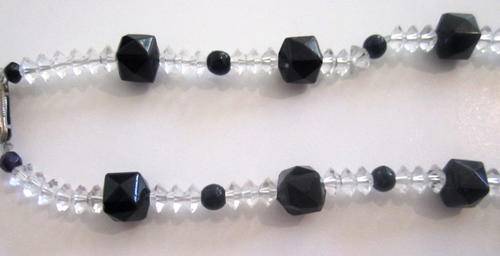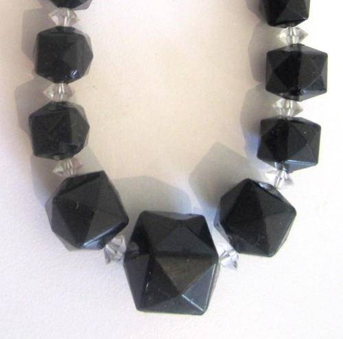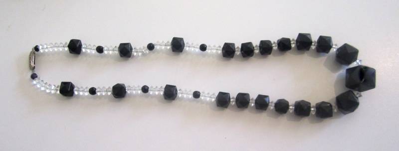 2 STRINGS OF VINTAGE BEADS--BLACK AND CRYSTAL