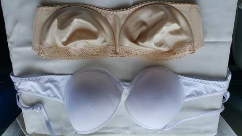 2 STUNNING BRA'S!!!! 1 WHITE PADDED AND 1 STRAPLESS BEIGE!!!! 36B