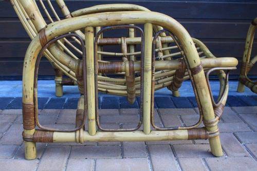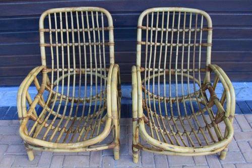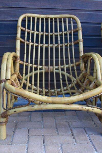 THESE 2 ABSOLUTELY STUNNING PETREANZE CANE BANANA CHAIRS ARE PERFECT ON YOUR PATIO OR NEXT TO YOUR POOL, UNDER YOUR LAPA OR WHEREVER YOU WANT TO RELAX. HAVE BIG BULKY CUSHIONS MADE FOR THEM AND YOU WILL HAVE COMFORT AND STYLE. THE CURVED DESIGN OF THESE SOLID, VERY STURDY CHAIRS WILL ADD CLASS WHEREVER YOU CHOOSE TO HAVE THEM IN YOUR HOME. THE CHAIR MEASURES APPROX 72cm x 105cm x 90cm HIGH.