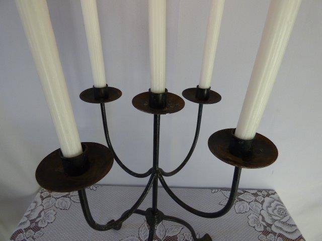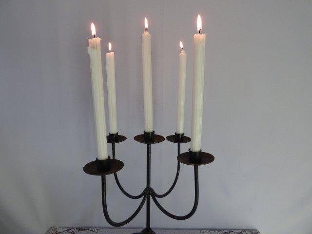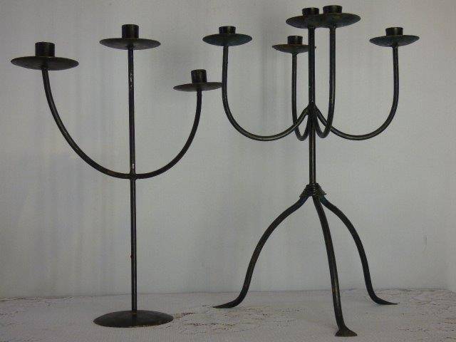 THESE TWO STUNNING AND VERY ELEGANT CANDLE HOLDERS WILL ADD A WARM AMBIANCE TO ANY ROOM YOU CHOOSE TO DISPLAY THEM IN. THE 5 CANDLE HOLDER MEASURES 47cm IN HEIGHT AND THE 3 CANDLE HOLDER MEASURES 44cm IN HEIGHT. THERE IS SOME AGE AND USAGE RELATED WEAR AND TEAR, BUT THEY ARE STILL AWESOME!