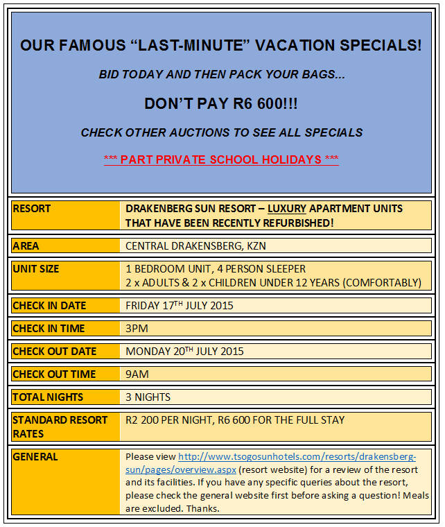 THIS IS A 4 SLEEPER UNIT AT DRAKENSBERG SUN
