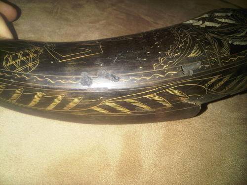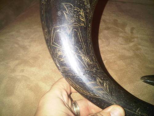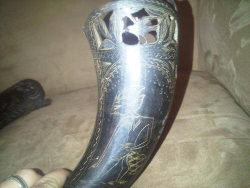These are horns from the bulls or cows over in Indonesia and have been carved well with pictures of the natives there and awesome designs around it too. there is some small damage please look at the pictures. These are big horns too.