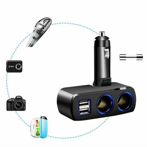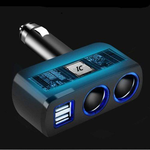 Multi-port car chargers back up more devices: 2 cigarette lighter sockets and 2 USB ports
