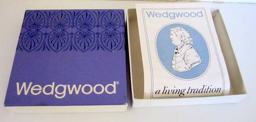 A Boxed Wedgewood ashtray and a Wedgewood dish.The boxed Wedgewood measures 9,3cm in diameter and the unboxed one measures 11,2cm 8in diameter.No chips on either Wedgewood but the unboxed dish has some white marks underneath--see images.