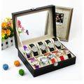 10 Compartment PU Leather Watch Display Box - Black