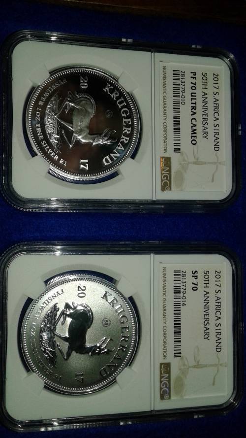 2 x 2017 SILVER KRUGERS...1 PROOF AND 1 UNCIRCULATED,IN KIAAT DISPLAY CASE...BOTH PERFECT COINS!!!