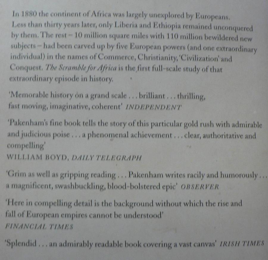 1. THE SCRAMBLE FOR AFRICA BY THOMAS PAKENHAM. SOFT COVER, GOOD CONDITION, USUAL USAGE MARKS, BINDING TIGHT, TEXT CLEAN. WELL ILLUSTRATED.