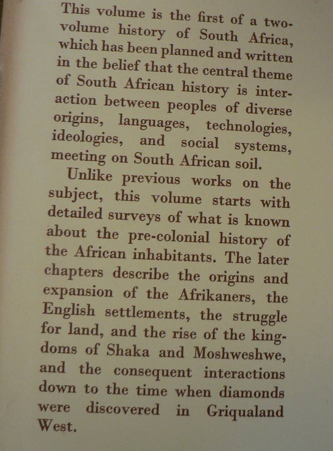 2. THE OXFORD HSTORY OF SOUTH AFRICA VOL 1. SA TO 1870, HARDCOVER, DUST WRAPPER. SOME USAGE MARKS ON DW. BINDING TIGHT, TEXT CLEAN. ILLUSTRATED WITH MAPS AND TABLES AND A FEW PLATES.