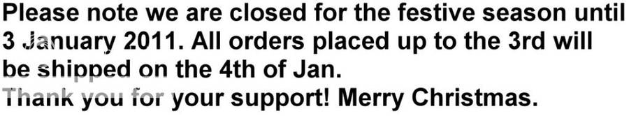 R35.00 Standard shipping using one of our trusted couriers applies to most areas in South Africa. Some areas may attract a R30.00 surcharge. This will be calculated at checkout if applicable.