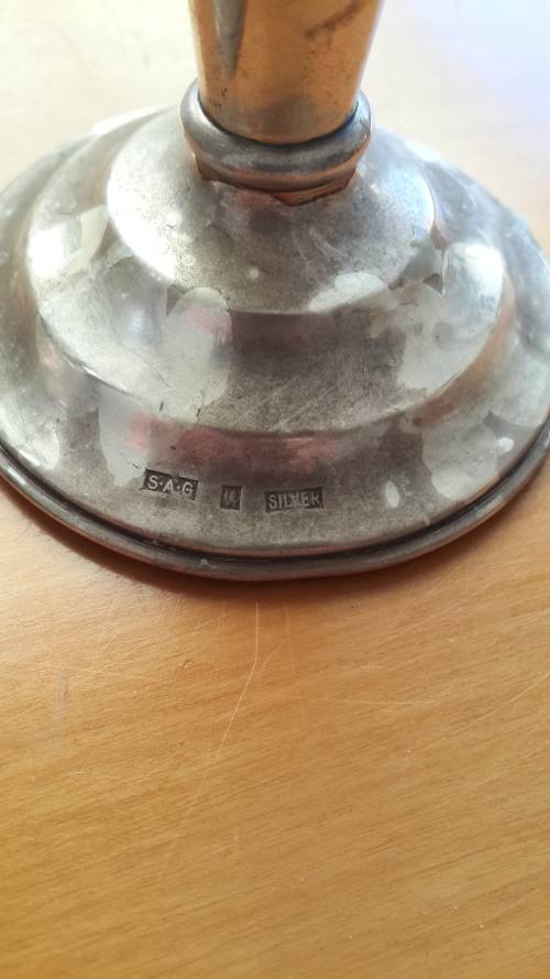 2 x Circa 50's / 60's South African Goldware Solid Silver Candle Holders