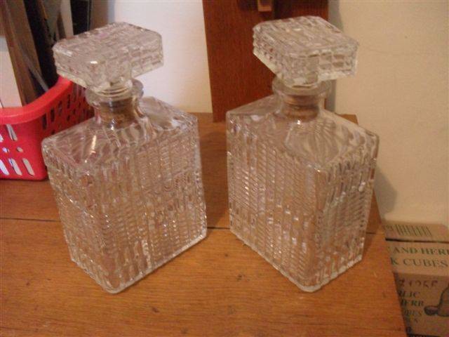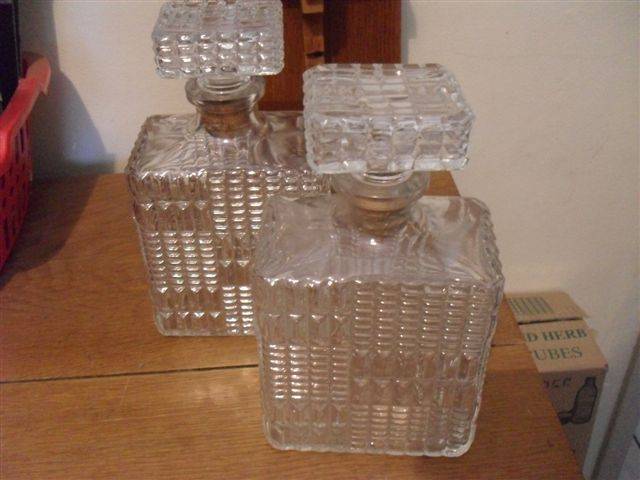 2 X GLASS DECANTERS WITH STOPPERS..........MADE IN FRANCE....