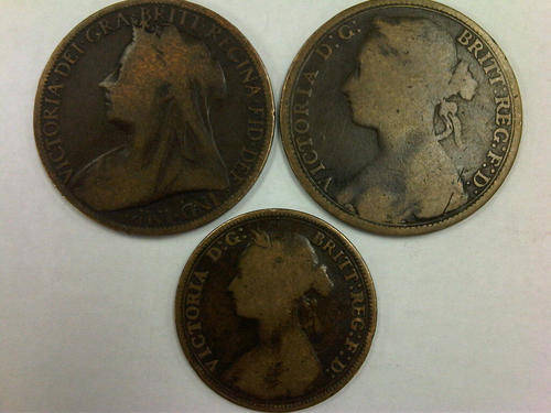 The Pennies are from 1880 and 1897 respectively and the Half-Penny is from 1880 too.