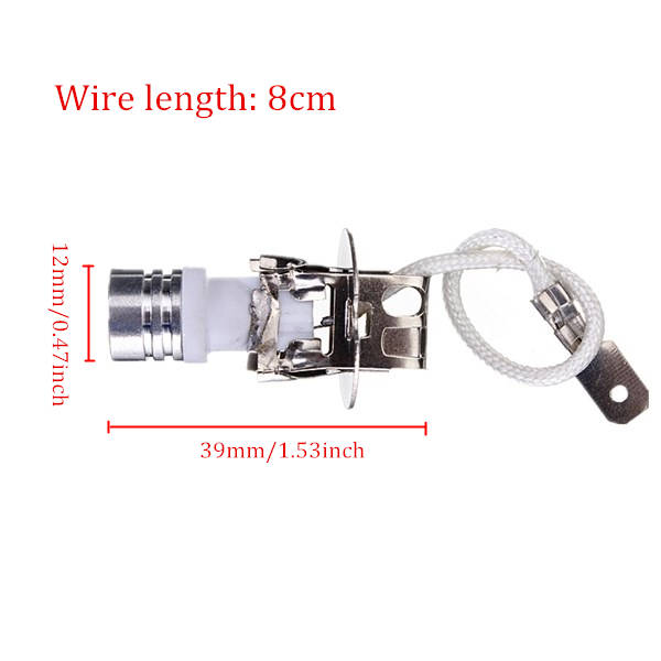 Voltage: DC 12V Socket type: H3 LED Qty: 2 led Power: 1W Length: 39mm (1.53") Diameter: 12mm (0.47") Light Color: Pure White (6500K) Lumen: 30lm