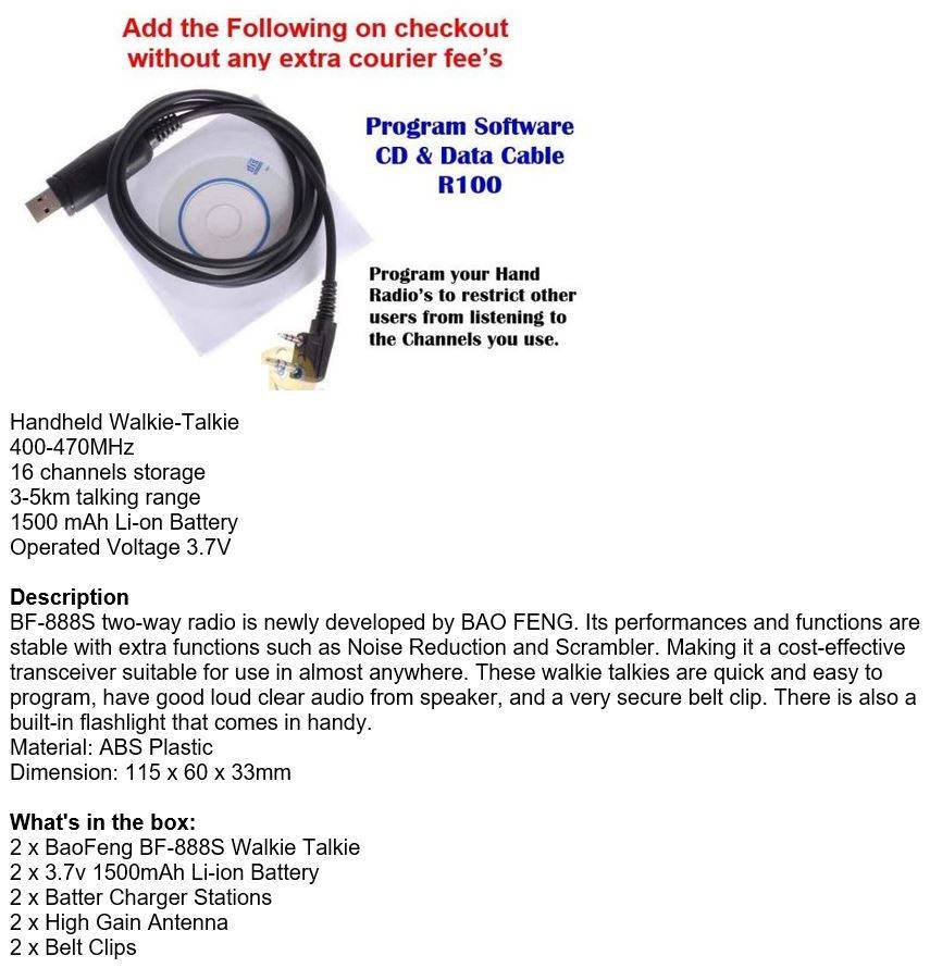 2 X Handheld Walkie Talkie Hand Radio Set with 16 Channels, 3 - 5 km talking range etc