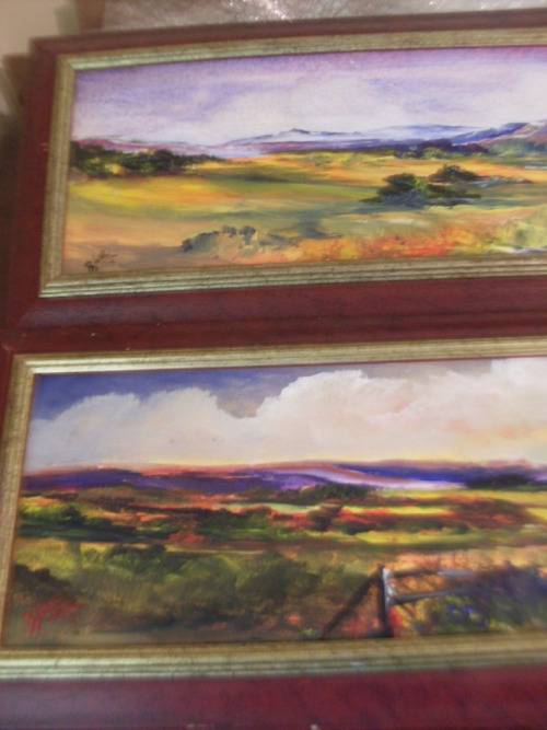 2 X PRETTY ORIGINAL FRAMED RECTANGULAR LANDSCAPES.... SA ARTIST ...OIL ON BOARD SIGNED BY B.J. NEL