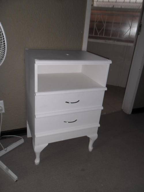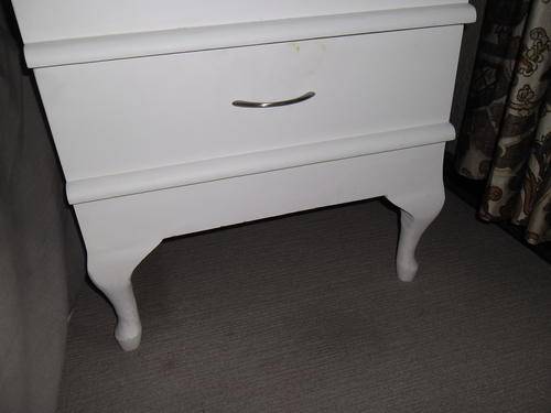 A Pair of Queen Anne style bedside tables with straight backs finished in white and all round good condition
