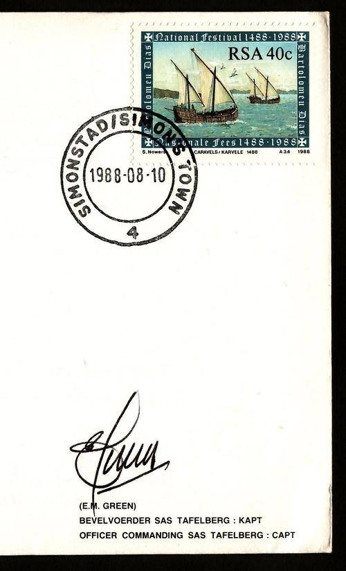 Cover No 384 of 5000 signed by Captain Green the Commander of the SAS Tafelberg at that time.